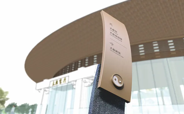 另外還有一種標(biāo)牌也是設(shè)計做的比較的,討巧的這種標(biāo)牌就是很簡潔,從上到下就是一個平面,然后這個平面有突出的感覺,平面用白色作為背景,然后平面上面的文字用黑色作為字體,這個字體下方還有英文。在這個標(biāo)牌上面有箭頭有左方向指引的箭頭,還有右方向指引的箭頭,分別是指引不同的功能區(qū)域,然后在這個標(biāo)牌的中間有當(dāng)前所處位置的名稱。標(biāo)牌旁邊還可以做一個小小的燈光來作為照明和襯托使用。